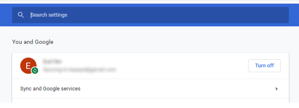 - Go to “Sync and Google services”